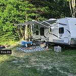 Just the right mix of trees and grass, sun and shade. An L-shaped blanket of trees gives Site 5 a wall of solitude with plenty of private lawn to spread out and soak in the island UVs. Even Class A motorhomes get lost in this cozy camping retreat.