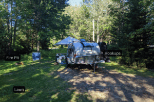 It’s a laid-back, easygoing spot — perfect for campers who want space, solitude, and the Maine woods overhanging their canopy.