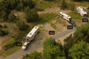 Open skies with a softer tree-lined edge. This spacious, east-facing site starts the day bright, then gradually settles into a mellow rhythm as the afternoon breeze rolls in. A light fringe of trees adds privacy without blocking the open sky view, and the level pad makes it an easy fit for rigs of all sizes.