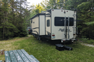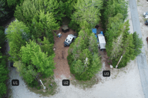 Site U2 gives you space to breathe and room to roam. Tucked just off the upper loop, it’s an easy-access site with a generous pad and a natural tree line that adds a depth of privacy and isolation. Whether you’re in a camper, trailer, or van, there’s plenty of room to spread out and settle in.